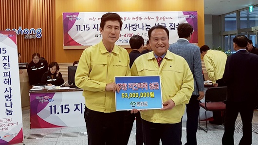 [군위=경북IT뉴스] 군위군은 11월 22일 지진 피해로 어려움을 겪고 있는 포항시민들을 위해 성금 5,300만원을 기탁했다고 밝혔다. 성금은 김영만 군수가 기탁한 500만원과 공무원들이 십시일반 모은 1,067만원 등 각계각층에서 모인 성금으로 마련해 이강덕 포항시장에게 전달했다.