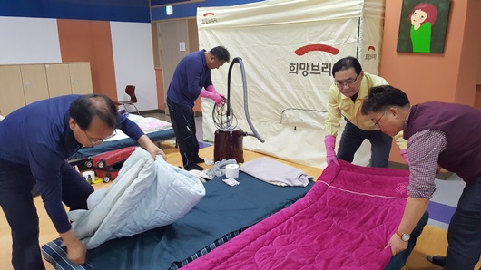 [울릉=경북IT뉴스] 울릉군은 지난 11월 24일 지진 피해를 입은 포항시의 이재민 대피소를 찾아 봉사활동을 펼쳤다.