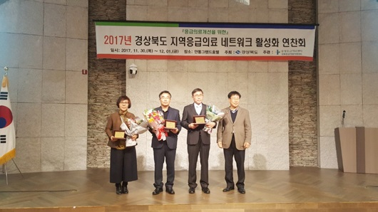 [구미=경북IT뉴스] 경상북도 주관으로 11월 30일 안동 그랜드호텔에서 열린 ‘2017년 응급의료 네트워크 활성화 연찬회’에서 구미보건소가 경상북도지사 우수기관 표창을 수상했다.