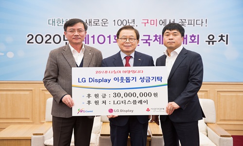 [구미=경북IT뉴스] LG디스플레이 신영철 상무 등 디스플레이 관계자 4명은 12월 8일 구미시청을 방문해 불우이웃돕기 성금 3,000만원을 기탁했다.