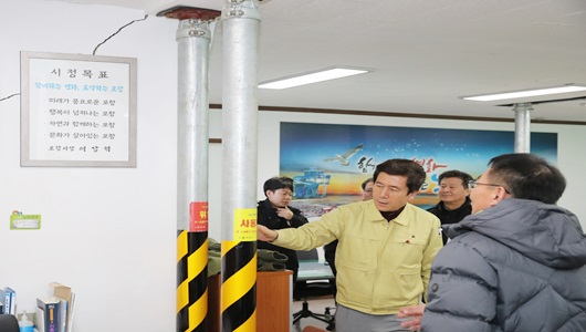 이강덕 포항시장은 12월 12일 북구청사를 둘러보고 “지진 발생 이후 주민들 피해복구에 주력해 왔지만, 공공건물 가운데 북구청사 피해 정도가 위험판정을 넘어 이같이 신축이전을 검토하고 있다.”고 밝혔다.