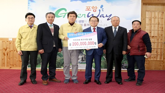 구미상공회의소, 도레이첨단소재 등 성금 2억원 이강덕 포항시장에 전달