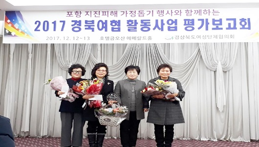 [영양=경북IT뉴스] 지난 12월 12일 경상북도 여성단체협의회가 주관하는 ‘2017 여성단체활성화지원 사업평가회’에서 영양군여성단체협의회가 도내 여성단체활성화 우수활동단체로 선정돼 수상의 영예를 안았다.
