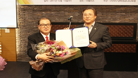 | 송영식 (사) 대구·경북성공CEO포럼 회장 (우) | 송영식 (사) 대구·경북성공 CEO포럼 회장은 환영사에서 “우리 포럼은 앞으로도 권익과 업무의 다양함을 담당하는 기업인들이 자리매김하는 포럼으로 계속 증진해 나갈 것이다.”며 “오늘 수료식에 참가하신 대표님들은 긍지와 자부심으로 기업활동에 전념하시고 국가경제발전에 희망과 씨앗의 디딤돌이 될 수 있기를 희망한다.”고 당부했다.
