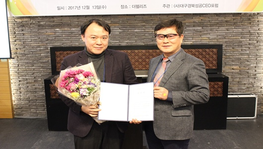 | 이홍희 경상북도의원 | 이홍희 경상북도의원은 “4차산업 혁명의 핵심은 인공지능 산업이다. 오늘 참석하신 기업인분들께서 관심을 가지고 앞장서 주셔서 많은 인력을 양성해 구미가 세계적인 IT도시답게 4차산업의 중심도시가 됐으면 한다.”고 말했다. 협회 발전을 위해 기여한 회원에 대해 도지사상 표창을 비롯해 대구경북지방벤처중소기업청장상 표창, 지역 대학 총·학장상, 감사패를 수여하고 송년의 밤 행사를 통해 우의를 다졌다. (사) 대구·경북성공CEO포럼은 구미지역의 대표적 기업협의체로 2004년 설립 이후 산학연관 네트워크 협동화 사업추진으로 기업성장을 지원하며 회원사가 가지고 있는 상품 및 기술을 사업화 할 수 있도록 많은 노력을 기울이고 있는 단체다.