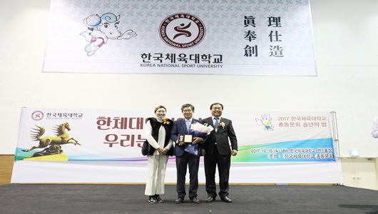 수상을 한 김성조 한국체대 총장은 “올해 송년의 밤 행사에서 총장 재직 3년 동안 쉬지 않고 열심히 노력한 부분을 높이 사서 자랑스러운 한체대인상을 주신 동문들께 깊게 감사드린다.”며 “곧 있을 평창 동계올림픽에서 한체대 학생들의 좋은 성과와 함께 올림픽의 성공을 위해 우리 천마인 들이 더 노력해줄 것을 당부드린다.”고 말했다.