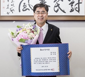 경북도청공무원노동조합(위원장 손현규)은 지난달 11월 17일부터 12월 8일까지 도청 공무원을 대상으로 설문조사를 실시한 결과 ‘2017년 BEST 도의원’에 최종 선정됐다고 12월 19일 밝혔다. 2017년 BEST 도의원 시상은 전체 도의원을 대상으로 평소 공정하고 창조적인 정책대안 제시 등을 통한 의정활동과 공무원과의 소통 리더십을 평가해서 수상하는 상이다.