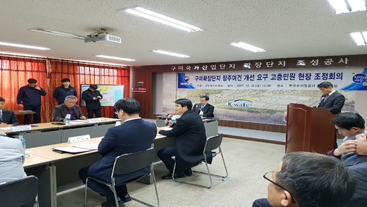 국민권익위원회(이하 국민권익위)는 경북 구미 한국수자원공사 현장사무실에서 현장조정회의를 열고 학교 및 근린공원 등 주민편의시설이 제대로 설치되지 않아 불편을 겪고 있는 입주민들의 집단고충민원을 해결했다고 12월 22일 밝혔다.