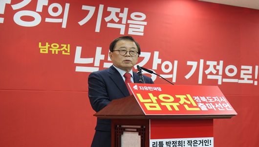 남 시장은 12월 26일 경북도청 브리핑룸에서 기자회견을 갖고 “문재인 정권의 출범이후 보수정권의 핵심지역을 적폐의 본산이란 오명을 씌웠다.”며 박정희 대통령의 강인한 정신력을 이어 받은 자신이 보수의 본산인 경북을 이끌어 갈 적임자임을 강조했다.