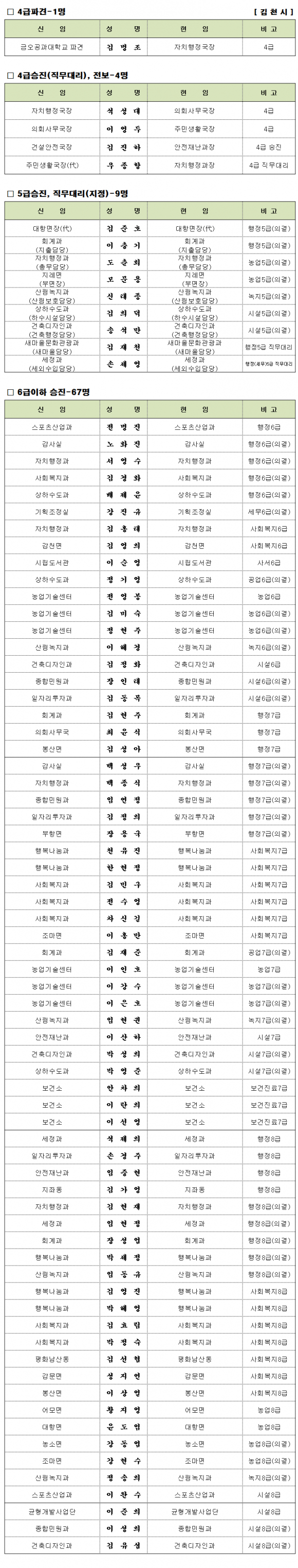 [김천=경북IT뉴스] 김천시는 1월 1일자 81명에 대한 인사이동을 발표했다.