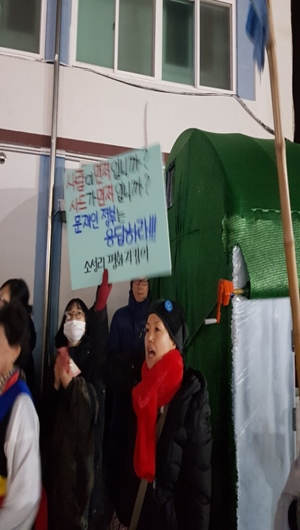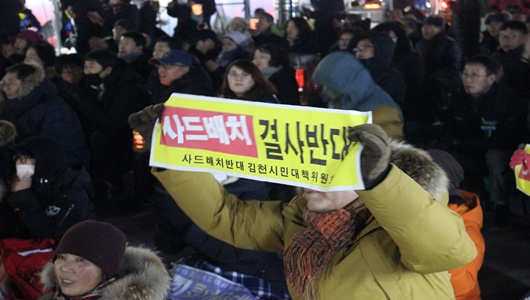 [김천=경북IT뉴스] 사드배치 반대에 대한 김천시민 촛불집회가 1월 7일 저녁 7시 김천역 앞 평화광장에서 ‘2018년 사드 뽑는 해’ 투쟁선포 촛불집회를 열었다.