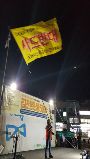 김천 시민대책위와 소성리 종합상황실 주관으로 열린 이날 집회는 6주체 단심줄 엮기를 시작으로 김천 촛불 500영상 시청, 김천대책위 공동위원장단 및 민주노총위원장 투쟁 결의 발언 등의 순으로 진행됐다.