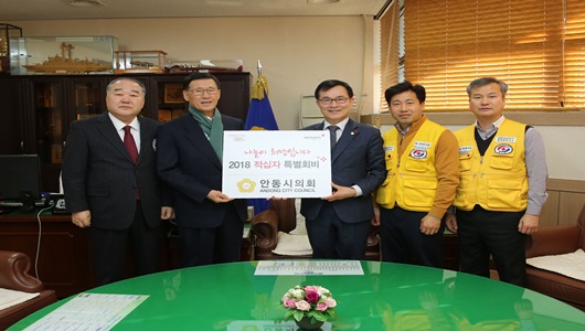 [안동=경북IT뉴스] 안동시 의회(의장 김성진)는 지난 1월 12일 의장실에서 어려운 이웃에게 삶의 희망을 나눠주는 적십자 특별회비를 전달했다.