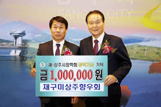 [상주=경북IT뉴스] 재구미상주향우회는 지난 1월 12일 구미시 더펠리즈에서 개최된 재구미상주향우회 제50차 정기총회에서 재단법인 상주시장학회에 장학금 100만원을 기탁했다. 민홍기 회장은 “고향을 아끼는 회원들의 마음을 모아 장학금을 기탁했으며, 조그마한 성금이지만 훌륭한 인재로 성장하는데 보탬이 되었으면 좋겠다. ”며 기탁사유를 밝혔다.