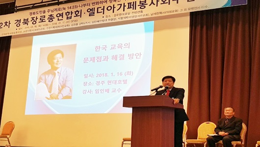 [김천=경북IT뉴스] 임인배 전 국회의원은 1월 16일 경주 현대호텔에서 열린 제22차 경북장로회 총연합회 수련회에 참석해 참석자 1,500명을 대상으로 ‘한국교육의 문제점과 해결방안’에 대한 특강을 진행했다.