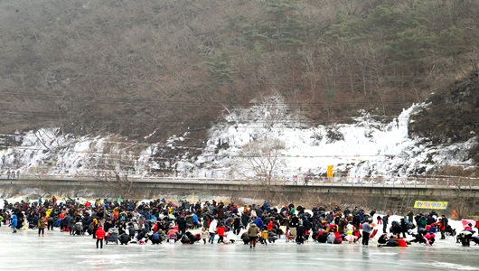 주말을 맞아 한 포털 사이트에 검색순위 6위에 랭크될 정도로 네티즌들로부터 폭발적 인기다. 대구, 부산 등 영남권역에서 5만여 명의 관광객과 함께 1만 대가 넘는 차량이 한꺼번에 몰리면서 6,500면의 주차장이 부족해 암산유원지 진입로까지 주차장으로 변했다. 빙어와 송어 등 얼음낚시 코너뿐 아니라 얼음 미끄럼틀, 민속놀이, 얼음썰매 등 대부분의 체험코너도 북새통을 이뤘다.