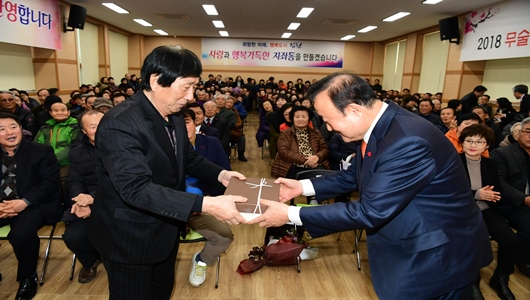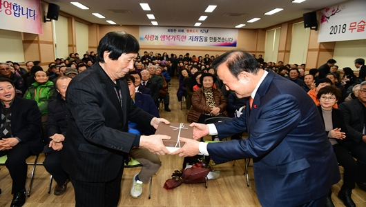 지좌동 김상규 노인회장이 주민을 대표해 직접 목도리와 장갑을 씌워주며 “행복도시 김천 건설을 위해 지금껏 희생하신 시장님께 우리들이 드리는 소박한 선물이다.”며 “이제는 우리가 감싸 드릴테니 따뜻한 겨울 보내셨으면 좋겠다.”고 말했다.
