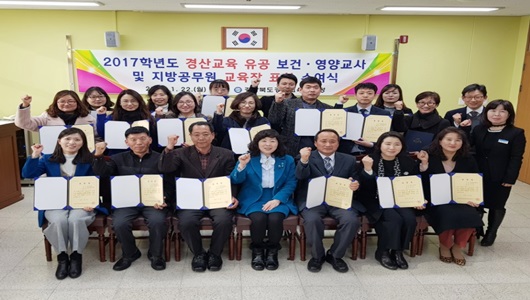 이번 수상자는 관내 유·초·중학교 및 경산 교육지원청에 근무하는 영양교사(5명), 보건교사(5명), 지방공무원(10명) 중에서 총 20명이 경산교육발전에 기여한 공로를 인정받아 교육장 표창을 수여받았다.