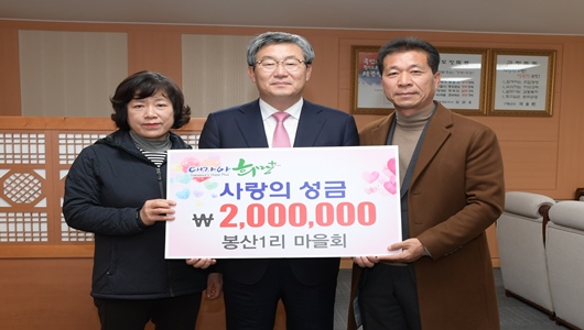[고령=경북IT뉴스] 고령군 봉산 1리 마을회는 1월 30일 군수실을 방문해 대가야 희망플러스에 성금 200만원을 기탁했다. 대가야 희망플러스는 저소득 고령 군민들의 생계비, 의료비, 주거환경 개선비 등을 지원하며 제도적 지원을 받기 힘들었던 복지사각지대 해소에 힘을 보태고 있다. 이에 마을 주민들의 소중한 성금을 기탁해 어려운 이웃에게 전달할 예정이다. 곽용환 고령군수는 “2017년에 교육발전 기금 기탁에 이어 올해에는 대가야 희망플러스에 성금을 기탁해 준 것에 감사드린다.”며 “복지사각지대에 놓인 우리 군민을 위해 소중하게 사용하겠다.”고 말했다.