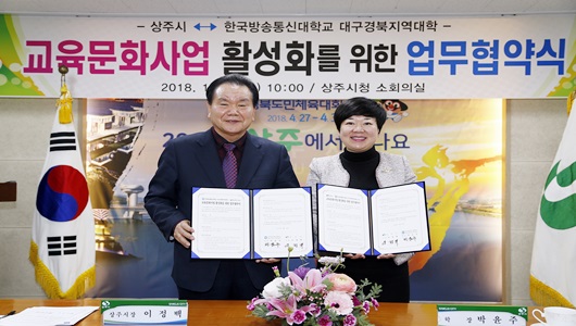 [상주=경북IT뉴스] 상주시와 한국방송통신대학교 대구경북지역대학은 1월 31일 교육문화사업 활성화를 위한 업무협약을 체결했다.