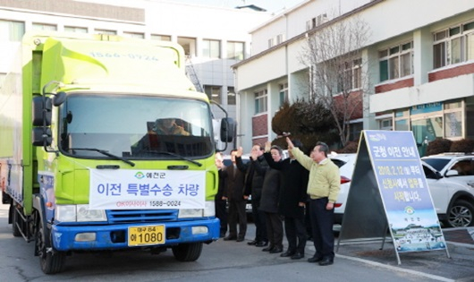 [예천=경북IT뉴스] 예천군은 오는 2월 12일부터 예천읍 대심리 신청사에서 업무를 시작한다. 군은 7일부터 9일까지 사흘간 본관과 별관 부서를 순차적으로 이사해 주민 불편 최소화에 중점을 두고 이전을 완료할 계획이다. 이번 청사 이전은 1,260여년만에 봉덕산 아래로 관아를 옮기는 것으로 이삿짐은 5톤 차량 57대 물량이다.
