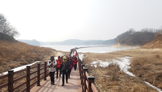 [안동=경북IT뉴스] 안동시는 2월 12일 3대문화권 사업인 세계유교선비문화공원 탐방로 조성사업 일환으로 개설한 ‘안동선비순례길’이 걷기동호인들에게 폭발적 인기를 얻고 있다고 밝혔다. 지난해 11월 18일 1,200여 명이 참여한 가운데 개통기념 걷기행사를 가진 이후 주말마다 수백 명이 찾고 있다. 안동선비순례길은 이제껏 접근하기 힘들었던 안동호 수변을 따라 둘레길이 조성돼 숨겨져 있던 안동호의 비경을 만끽할 수 있다. 특히 선성현길 1코스에는 안동호 수면 위에 길이 1㎞, 폭 2.75m 규모의 수상데크인 선성수상길이 자리하고 있어 더욱 인기를 얻고 있다.