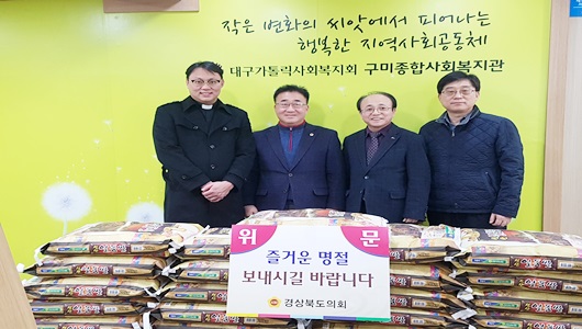 [구미=경북IT뉴스] 장영석 경상북도의회 의원(구미시 4선거구)은 2월 13일 설 명절을 앞두고 구미종합사회복지관을 방문해 정성껏 준비한 위문품을 전달하고 종사자들을 격려했다.