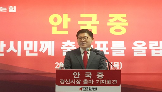 [경산=경북IT뉴스] 안국중(자유한국당, 57세) 전 대구광역시 경제통상국장이 2월 22일 안국중경제연구소에서 기자회견을 열고 경산시장 출마를 공식 선언했다.