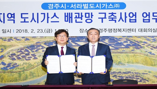 [경주=경북IT뉴스] 경주시는 2월 23일 북경주행정복지센터에서 도시가스 미공급지역인 안강지역(양월·안강·근계리 일원) 도시가스 공급 확대를 위한 도시가스 배관망 구축사업 업무협약 양해각서(MOU)를 체결했다고 밝혔다.