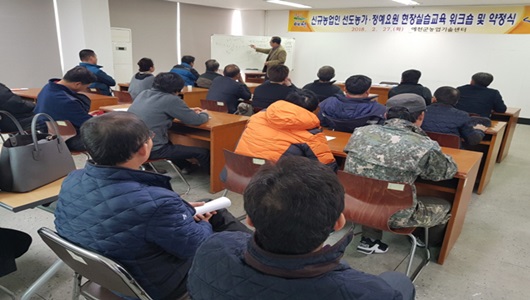 [예천=경북IT뉴스] 예천군 농업기술센터는 2월 27일 농업인회관 2층 회의실에서 신규농업인 선도농가 정예요원 현장실습교육 워크숍 및 약정식을 가졌다.