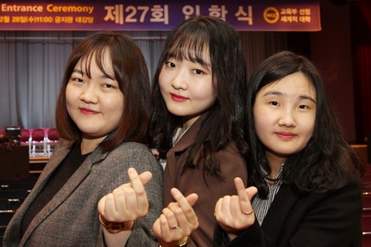 이날 전문학사와 4년제 정규학사(전공심화과정 포함) 과정에 총 2393명의 신입생이 입학했다. 입학식에서는 경남 창녕에서 온 효녀 자매 이야기가 화제가 됐다. 이수지(27,간호학과)·수가(24,비주얼게임컨텐츠과)·수아(20,보건의료행정과) 씨가 그 주인공.