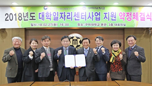 [구미=경북IT뉴스] 구미대학교 대학일자리센터는 2월 27일 본관 3층 대회의실에서 정창주 구미대 총장, 박정웅 구미고용노동 지청장 등 관계자 10여 명이 참석한 가운데 대구지방고용노동청 구미지청과 3년 추가 지원에 대한 약정 체결식을 가졌다.