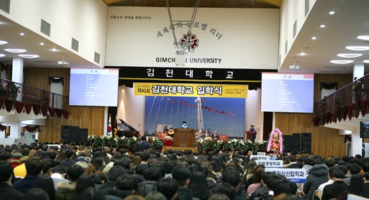 [김천=경북IT뉴스] 김천대학교 제40회 입학식이 2월 28일 생명관에서 성대하게 열렸다. 입학식에는 강성애 총장을 비롯한 윤옥현 부총장, 법인이사들과 학교법인 김천대학교 이태준이사, 서유철이사, 박성만이사 등을 비롯한 다수의 내·외빈들, 신입생, 학부모, 교직원 등이 참석했다.
