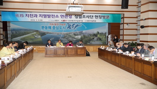 [포항=경북IT뉴스] 지난해 11.15지진 관련 지열발전소 정밀조사단이 지난 3월 6일 포항시를 방문해 사전현장 답사를 실시하고 포항시청에서 향후 조사 계획에 대해 설명했다.