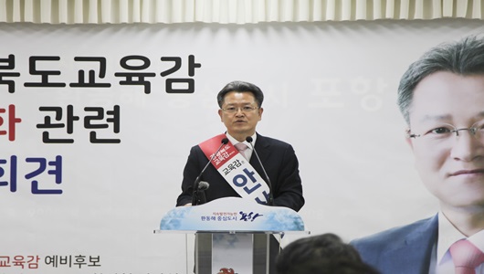 [포항=경북IT뉴스] 경상북도 교육감 출마를 선언한 안상섭 예비후보가 3월 7일 포항시청 브리핑 룸에서 완전한 보수 성향의 후보 단일화를 제안하는 기자회견을 개최했다.