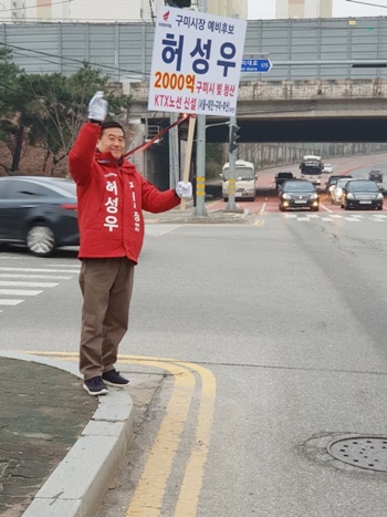 광평동 홈플러스 네거리, 구미고등학교, 인동사거리 등에서 시민들과 직접 소통하며 거리 인사를 하고 있는 허 예비후보는 ‘2000억 구미시 빚 청산’과 ‘KTX노선 신설(서울~대전~구미~부산) 추진’을 대표 공약으로 내세우며 시민들의 지지를 호소했다.
