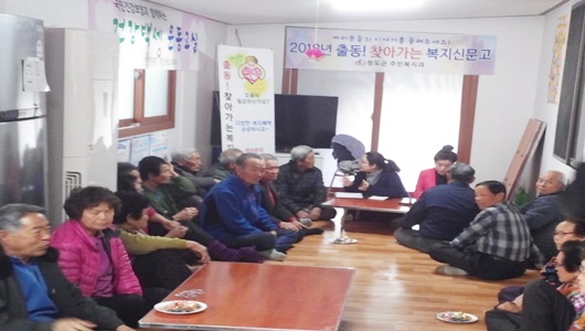 [청도=경북IT뉴스] 청도군은 3월 8일 각북면 지슬2리 경로당에서 마을 주민을 대상으로 각종 복지급여 안내, 복지 혜택에 대한 궁금한 사항 청취와 도움이 필요한 어려운 이웃을 발굴하기 위한 ‘출동! 찾아가는 복지신문고’를 운영했다.