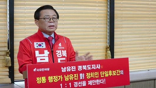 [경북=경북IT뉴스] 남유진 경북도지사 예비후보가 3월 13일 자유한국당 경북도당에서 기자회견을 열고 ‘행정가 대 정치인의 1대1 경선’을 제안했다.