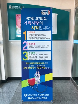 [김천=경북IT뉴스] 김천시는 3월 23일 우리나라 사망원인 1위인 암을 조기에 발견해 치료율을 높이고 사망률을 낮추고자 시민을 대상으로 국가 5대암 무료 검진을 실시한다고 밝혔다.