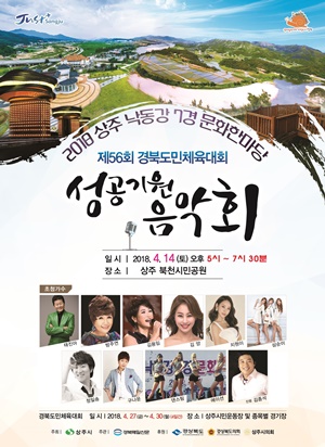 [상주=경북IT뉴스] 상주시는 4월 14일 북천시민공원 야외음악당에서 ‘낙동강 7경 문화한마당’의 일환으로 ‘제56회 도민체전 성공기원 음악회’를 개최한다고 밝혔다.