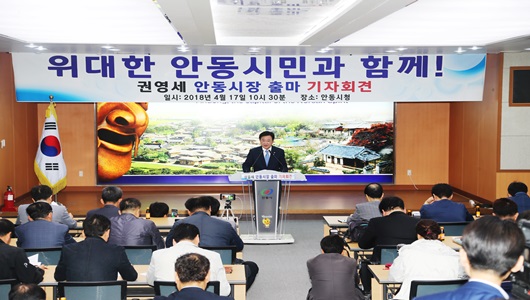 [안동=경북IT뉴스] 권영세 안동시장이 무소속으로 3선에 도전할 뜻을 분명히 했다. 권 시장은 최근 6․13 지방선거 자유한국당 안동시장 후보 공천에서 배제됐다. 이에 4월 17일 안동시청 본관 청백실(대회의실)에서 공천배제에 따른 입장과 함께, 향후 행보와 관련한 기자회견을 열었다.