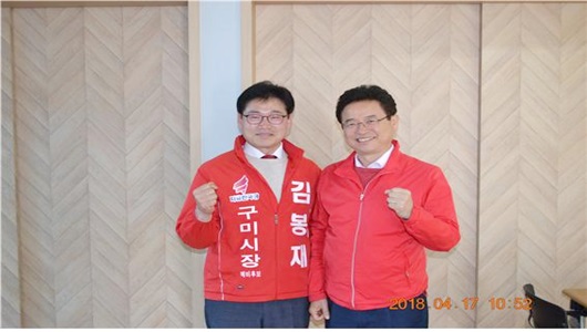 [구미=경북IT뉴스] 김봉재 구미시장 예비후보(자유한국당)는 17일 오전 이철우 자유한국당 경북도지사 공천자를 만나 경북과 구미의 상생방안을 논의했다.