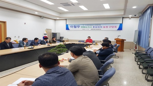 이철우 의원은 4월 19일, 농업경영인협회 전·현직 회장단 초청, 정책 간담회에서 “소비자가 무얼 바라는지 열심히 듣고 정보를 제공하며 새로운 것에 과감히 도전해야 성공할 수 있다.”며 이같이 말하고 “도지사로 당선되면 농민과 경북도가 상생하는 애농구국운동(愛農救國運動)을 본격적으로 펼쳐 나가겠다.”고 말했다.
