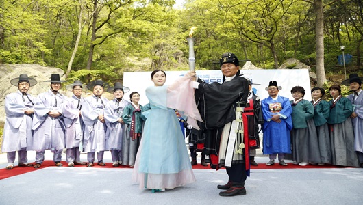 [상주=경북IT뉴스] 4월 27일부터 나흘 간 상주에서 개최되는 제56회 경북도민체육대회 성화가 상주 천봉산에서 채화됐다. 한편 이 날 오전 경주 토함산에서도 채화 행사가 진행돼 합화 뒤 상주시청 전정에 임시 안치 후 개막일인 27일 상주시민운동장 성화대에 점화된다. |