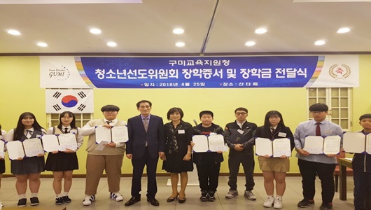 [구미=경북IT뉴스] 구미교육지원청 청소년선도위원회는 4월 25일 구미관내 중·고등학교에서 추천받은 장학생 10명에게 장학금 400만원을 전달했다고 밝혔다.