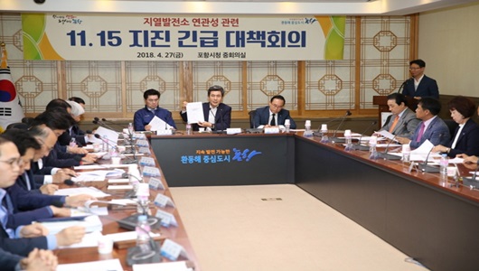 [포항=경북IT뉴스] 포항시는 지난해 11월 15일 발생한 규모 5.4의 포항지진이 지열발전에 의한 자극으로 일어났다는 연구결과가 사이언스지에 발표되면서 지역 유관기관단체장 등 30여명이 참석한 가운데 4월 27일 시청에서 긴급회의를 개최했다.