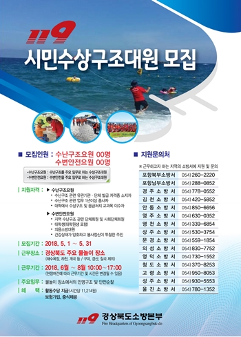 [경주=경북IT뉴스] 경주소방서(서장 안태현)는 5월 31일까지 경주지역을 찾는 피서·행락객들의 여름철 물놀이 안전을 위해 '119시민수상구조대'를 모집한다.