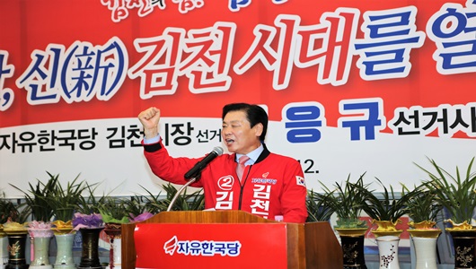김응규 후보는 “자유한국당 이철우도지사, 송언석 국회의원, 김응규 김천시장의 환상 트리오로 반드시 승리하여 다 함께 잘 사는 새로운 김천을 건설하겠다”며 참석한 지지자들의 환호와 성원에 화답했다.