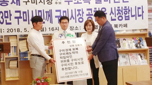 또, “병원장과 구미시 새마을 회장, 종합자원봉사센터 소장을 역임한 경험을 바탕으로 항상 시민의 입장에서 생각하고, 현장에서 생생한 민생의 소리를 듣고 해결하는 시민을 섬기는 시장이 되겠다.”고 포부를 밝혔다.