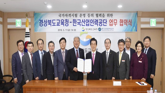 [경북=경북IT뉴스] 경상북도교육청은 5월 11일 교육청 정책협의실에서 한국산업인력공단과 중·고등학생의 직업진로 지원과 국가자격시험의 원활한 운영을 위한 업무협약을 체결했다고 밝혔다.